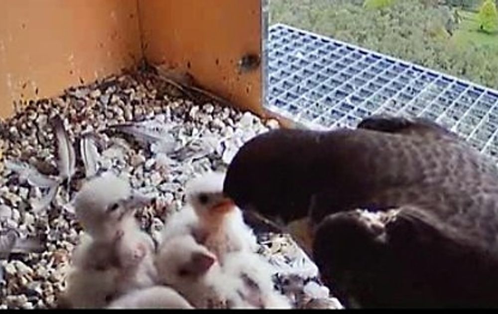 Als ze wat ouder worden gaan ze ook kleine steentjes eten. We zagen dit de oudervogels tijdens het broeden weleens doen. Een steentje, zorgvuldig gekozen met wat hoekige randjes helpt in de spiermaag om brokken te vermalen. Zo n steentje komt er later ook weer met een braakbal uit.´