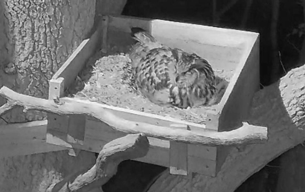 Om Oehoes af en toe een handje te helpen plaatsen we soms kunstnesten net zoals bij ons beleefdelente Oehoepaar. Deze kist werd geplaatst om de oehoes weg te houden bij alle bedrijvigheid op dit terrein en ze zo een veilige en goede broedplaats te bieden.