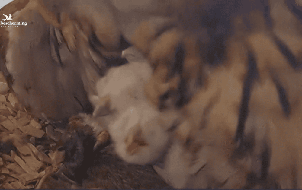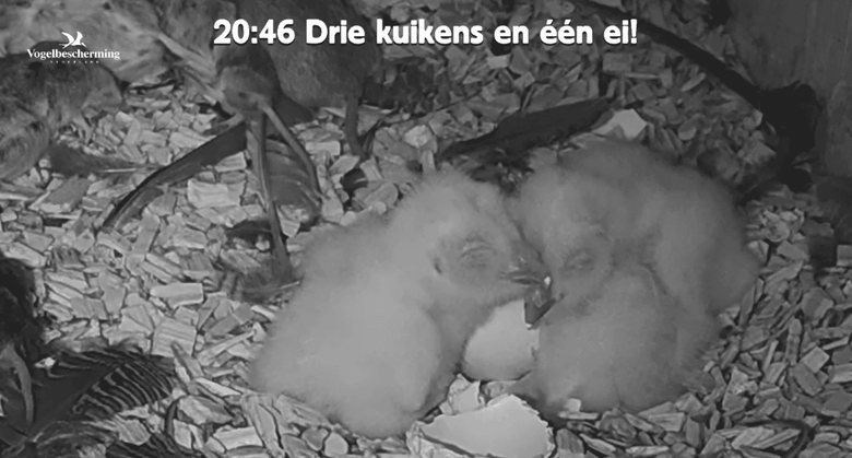 Dat kan nog wel hoor. Kuiken nummer vier begint dan wel met een kleine achterstand, maar als er muizen genoeg zijn, komt dat ook nog wel goed. Maar het is dus nog even afwachten of het vierde ei nog uit komt.