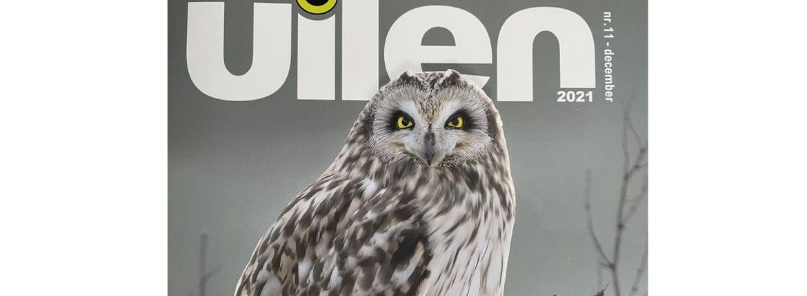 Header: fragment van de cover van Uilen 11, met een prachtige foto van een velduil van Rein Hofman