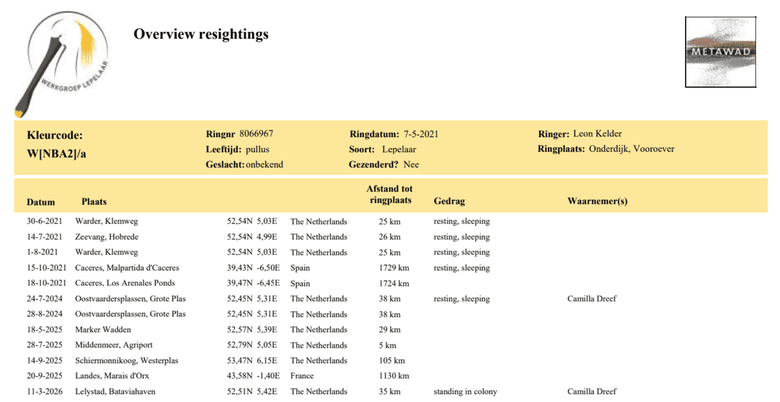 Op dit moment hebben we vijf lepelaars afgelezen voor de camera’s. Daarvan komen er drie van de Vooroever bij Onderdijk. Alle drie de lepelaars bezochten ook allemaal wetlands in Nationaal Park Nieuw Land. Veruit de meeste lepelaars die we ook voor Beleef de Lente hebben afgelezen, kwamen van deze kolonie.