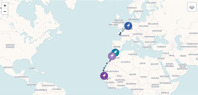 Je kan de lepelaars zelf volgen via de website van Nationaal Park Nieuw Land, Global Flyway Network en de app Animal Tracker.