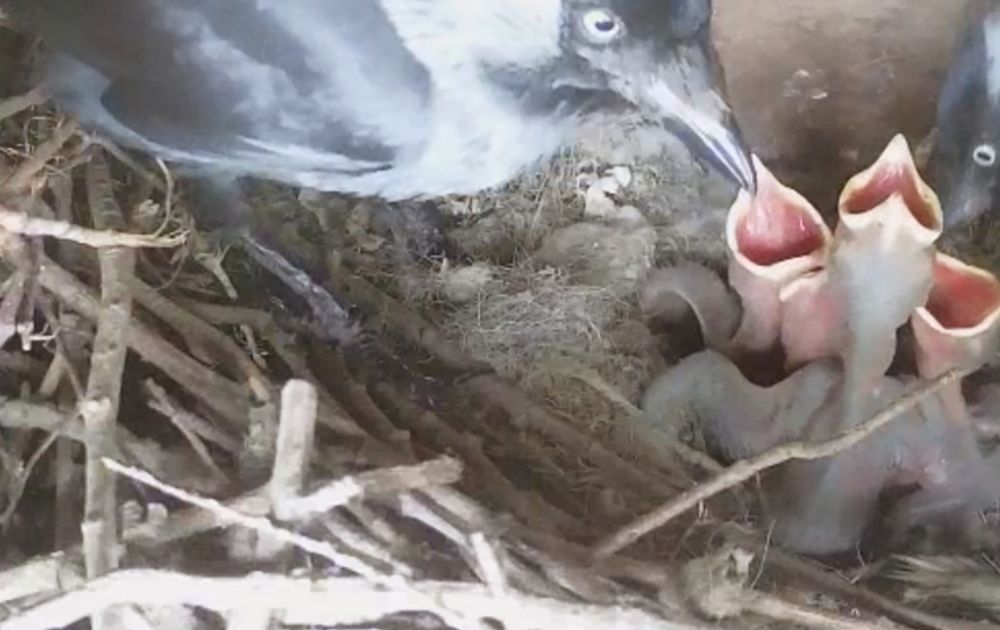 Maandagochtend zag ik nog 4 enthousiast gestrekte nekjes als M of V binnen kwam, maar in de loop van de middag haakte 1 van de 4 duidelijk af en werd steeds minder levendig. Eind van de middag werd duidelijk dat hij/zij niet meer leefde. Naar de oorzaak kunnen we slechts raden. Allerlei theorieën kwamen omhoog, maar we weten het simpelweg niet. Wat we wel weten is dat sterfte onder nestjongeren een heel normale gebeurtenis is. Niet het leukste deel van zo’n nest volgen, maar het hoort er wel gewoon bij.