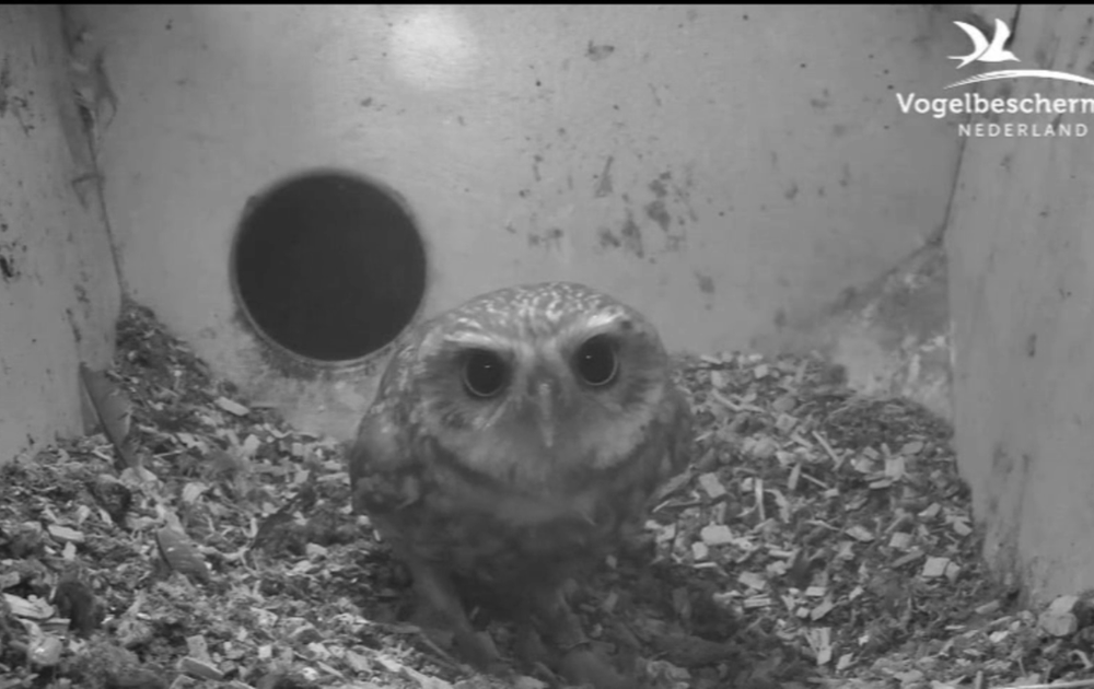 Het filmpje laat prachtig zien hoe M zijn best moet doen om zijn nieuwe vlam te verlokken de nestkast te betreden. Helemaal vanzelf ging het niet! Ze stapt nogal omzichtig de nieuwe relatie in. En wat mot dat, met die camera’s?..... Een onverwachte ontwikkeling, maar wel een leuke!