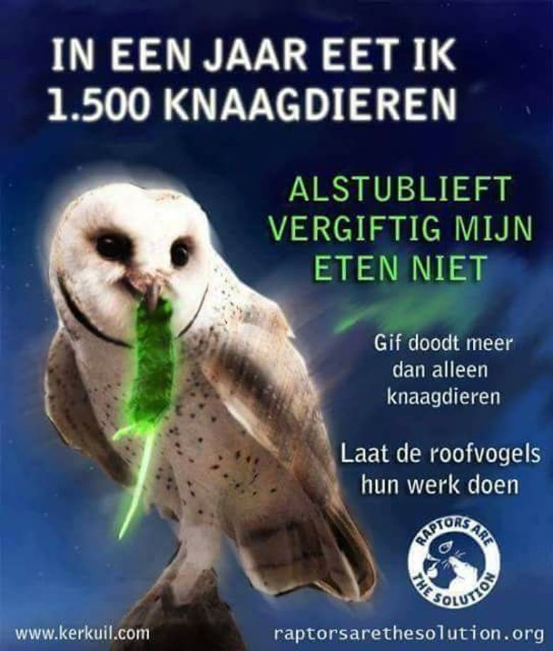 Kerkuilen zijn bijzonder gevoelig voor bestrijdingsmiddelen tegen knaagdieren (ratten, muizen). Gebruik nooit gif in de tuin, maar al helemaal niet als jij of de buren uilenkasten hebt hangen!