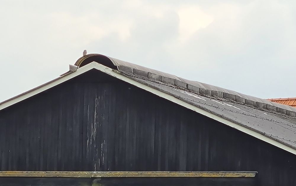 Ondertussen zijn de meeste jongen uit de eerste legsels uitgevlogen en druk bezig de omgeving van het erf te verkennen. Daarbij bezoeken ze soms vreemde plaatsen. Zo kregen we een telefoontje over een jong dat wel een heel bijzondere plek uitgekozen had voor een rustpauze: de badkamer. Het nest bevond zich in de spouwmuur in de nok van het dak, op een plek waar we niet bij kunnen. De heer des huizes spotte hem toen hij - klaar met douchen - de douchcabine uitstapte om zijn handdoek te pakken. Hoe het jong in de badkamer terechtkwam, zal altijd wel een raadsel blijven, maar toen we de deur openden, zagen we hem direct zitten, op de handdoek die nog over de radiator hing. Het dier leek net zo verbaasd als wij. Hij liet zich zonder veel gedoe pakken - waarschijnlijk nog in shock - en nadat we hem geringd hadden, hebben we hem in de nestkast die op het erf hangt - maar niet gebruikt is - geplaatst. Hij zal die avond heel wat te vertellen hebben gehad ...