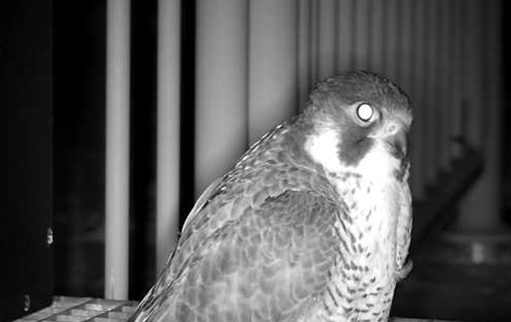 Het lijkt er dus op dat de rui bij NV is begonnen. (.. ik ken iemand die zou zeggen: wij zijn ons brein... ;), maar eigenlijk zijn wij-wezens- natuurlijk onze hormonen, zo ook bij de slechtvalk). Haar testosteronspiegel daalt, en haar progestoronspiegel stijgt, zeg maar. Ze is in een soort 'overgang'. Mogelijk moeten we concluderen dat haar hormonen een beetje in de war zijn, en ze daarom nog nesteldrang vertoont. We kunnen in ieder geval zien dat de binding van haar met de toren, met de kast en met M een stuk steviger is geworden.