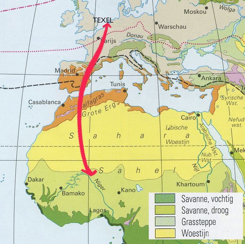 Goed gekozen, niet voor niets overwinteren ze precies daar. In het westen van de Sahel ligt een strook met savanne en graslanden: korte vegetatie. Ideaal voor insecteneters als tapuiten, die hun voedsel voornamelijk rennend op de grond zoeken. Een overeenkomst wat korte vegetatie betreft met hun Nederlandse broedgebieden - zoals het Texelse grijze duingebied - is dan ook snel te vinden.