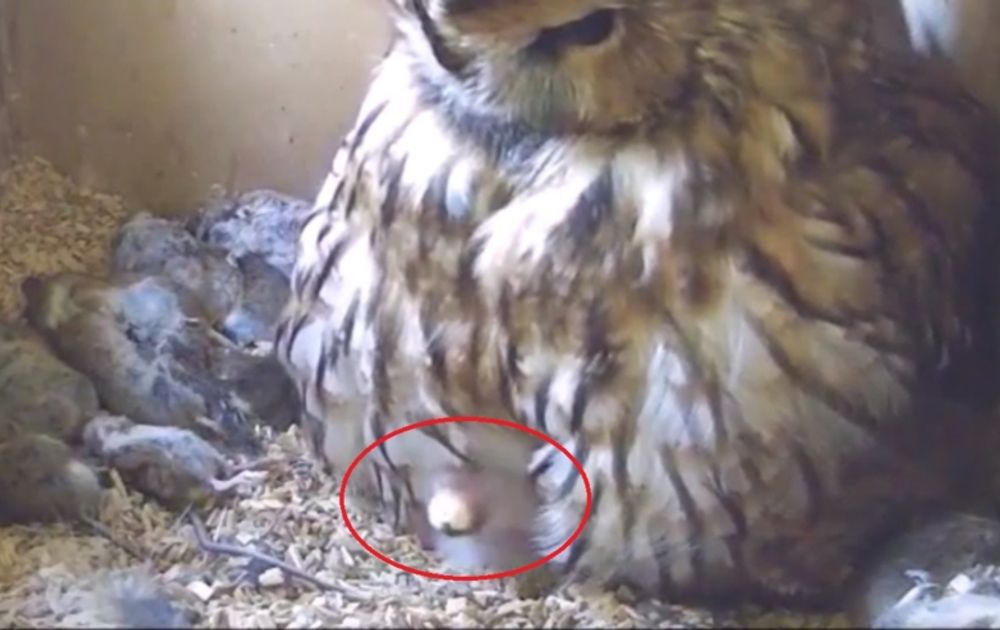 Hoewel Kuuk nog niet kan vliegen en binnenshuis moet blijven, kan vrouw Bosuil natuurlijk wel even naar buiten de beentjes strekken. Een echte dame braakt niet voor de camera's natuurlijk! Wat ze wel doet, is netjes het huis schoonhouden. En als dat betekent de uitwerpselen of braakballetjes van je kind opeten, dan doe je dat! Buiten in de bosjes kun je het er allemaal toch weer uit gooien...