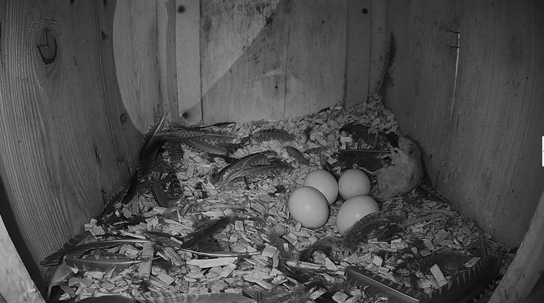 Man bosuil heeft opnieuw bewezen een goede jager te zijn. In de afgelopen 24 dagen heeft hij al 41 prooien aan het broedende vrouwtje gebracht. Vorig jaar in dezelfde periode waren dat 31 prooien, dus dat zijn er nu al 10 meer! Dat is maar goed ook, want als dit jaar alle eitjes uitkomen dan hebben ze vier kuikens en die hebben veel eten nodig om groot te worden.