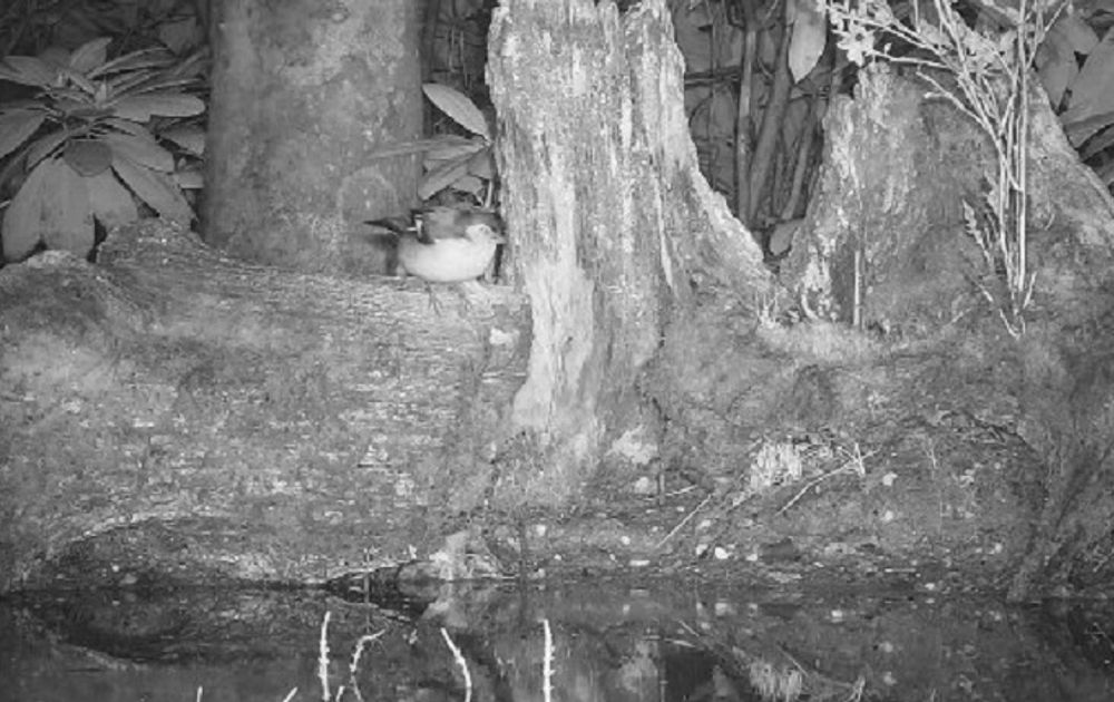 Maar of het allemaal zo moeizaam ging vanwege een mogelijk beschadigd vleugeltje, of (ook) omdat het voor de vink volkomen duister was? Zangvogels zien in het donker niets! Het is alsof hij met een blinddoek voor zijn weg moest vinden bij de, gelukkig vertrouwde, vijver, en dan ook nog na waarschijnlijk een confrontatie met een kat of uil. Dus in shock.