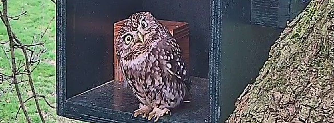 Op het moment zitten de steenuiltjes overdag in de kast, hier zitten ze te dutten, te poetsen en bouwen ze weer een innige band op die straks (hopelijk) voor nakomelingen zorgt. Ze gaan als de schemer begint zich klaar maken in de kast om naar buiten te gaan, dineren met het liefst muis. Mogelijk een tafeltje voor 2, dat zien we eigenlijk niet.