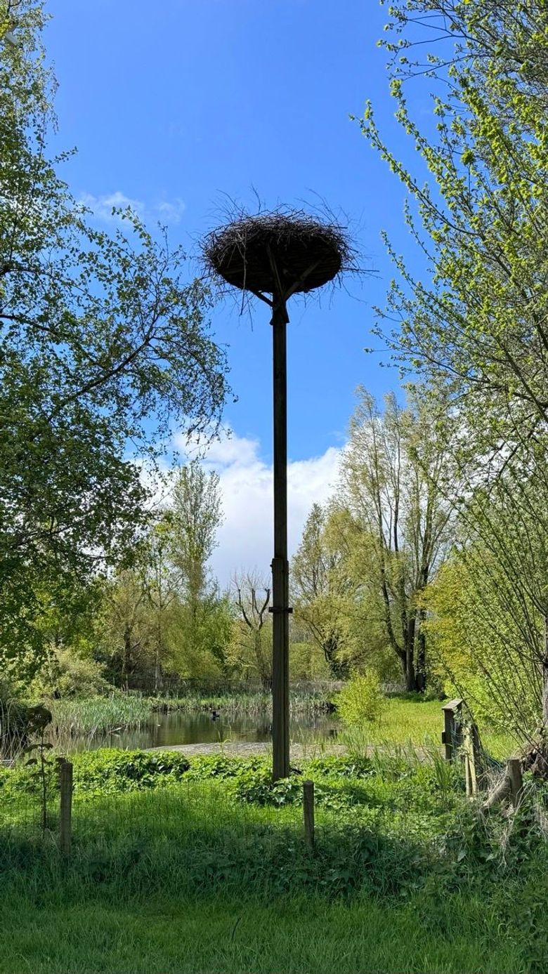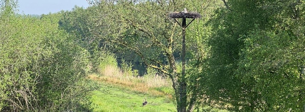 Toch valt dat wel mee als je wat meer van de omgeving van het nest meekrijgt. Graag delen Albert en ik in onderstaande video wat van het lenteleven rondom ons ooievaarsnest. Zo verzamelde Ma2 nestmateriaal achter de vijver. De brutale nijlganzen die het haar op het nest moeilijk maakten, wandelden nog een rondje door de tuin. En ook de grauwe ganzen zijn op de webcam vaak te horen. Dat komt omdat zij al jongen te verdedigen hebben. Net als de wilde eenden. En voor degenen die het ’s morgens vroeg of ’s avonds laat hebben gemist, komt het gehoemp van de roerdomp kort voorbij.