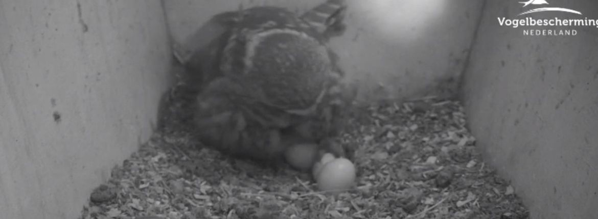 Vast broeden doet ze dus nog niet, maar dat hadden we ook niet verwacht. Benieuwd wat ze komende nacht gaat doen. Als ze er nog een ei bij gaat leggen, zal ze nog veel afwezig zijn. Maar ook als ze al veel tijd op de eieren doorbrengt, kan er nog best een ei bijkomen. Aan een voorspelling waag ik me dan ook beter niet. Dinsdagnacht weten we meer.