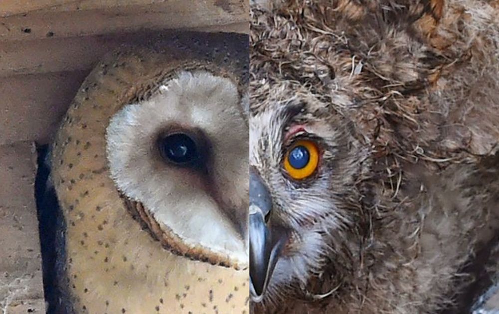De combinatie oehoe en kerkuil is geen gelukkige, behalve als je zelf de oehoe bent. De oehoe jaagt behalve op tal van zoogdieren en grotere vogels ook o.a. op bos- en ransuilen. Kerkuilen lijken wat minder vaak slachtoffer te worden van deze top-predator (zo heet je als je ergens bovenaan de voedselpiramide staat), maar een wijze kerkuil doet er toch verstandig aan een blokje om te vliegen als deze grote lummels in de buurt zijn.
