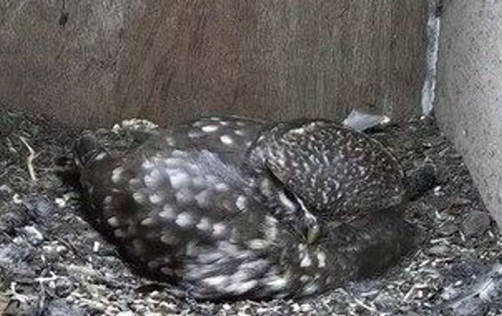 Dan zitten de stamgasten op het puntje van hun stoel. Oren wijd open, hoor jij al piepjes? Nee joh, dat zijn de vogeltjes buiten. Het zou mooi zijn als de wind dan eens een paar dagen gaat liggen. Want de dag erop is er een grote kans op een krak. Nu ligt er geen zaagsel op de bodem, dat scheelt al de verwarring van: ik zie een stukje eischaal. En horen we een krak, dan is het weer eindeloos wachten tot vrouw ons een blik gunt. Voor de vaste kijkers, die al van wat nestjes hebben genoten is het ook spannend. Mag man zich ermee gaan bemoeien? Is vrouw dan nog steeds mild? Zal ze hem dan wel de muizen uit de snavel rukken? Voorlopig duwt hij haar zowat de muizen in haar snavel. Hij is zeer gedienstig.