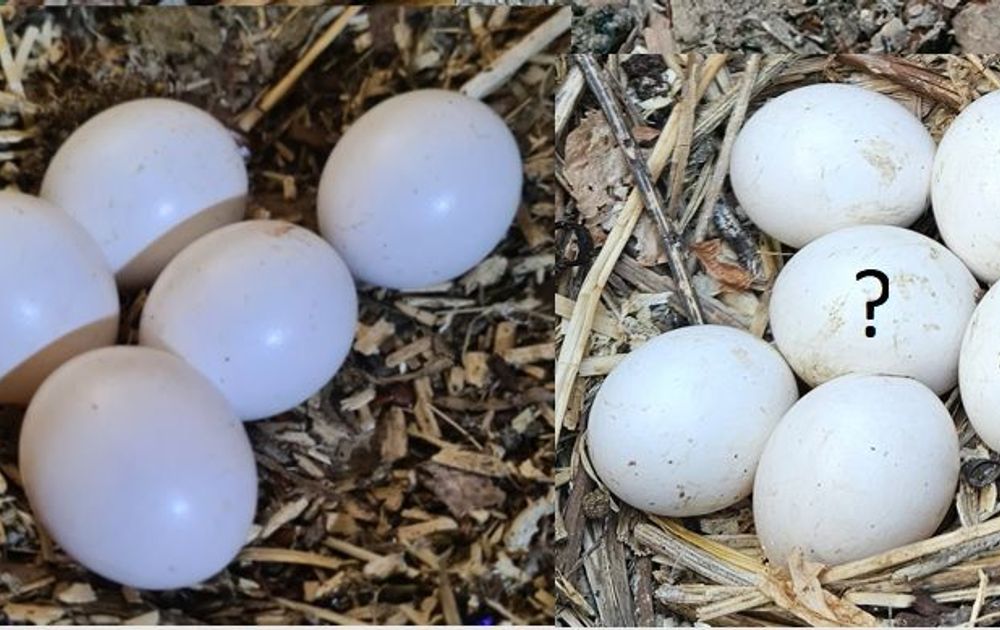 ... legsels met zes eieren niet heel vaak voorkomen. We troffen er in de loop der jaren 79 op 1819 volledige legsels. Iets meer dan 4%. Als ik mijn geld erop moest zetten, zou ik het niet doen. Legsels met vijf eieren daarentegen, zijn niet ongewoon. Bijna een kwart (23,3%) van de legsels die we vonden, telde vijf eieren. Best veel nog.