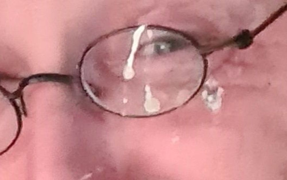 Toen ik op een andere plek het mannetje overgaf aan Pascal spoot er een sierlijke sliert witte schijt recht in zijn gezicht. Het droop van zijn snor af, zo zijn mond in. Had hij geen bril gedragen, zou een deel in zijn oog terecht zijn gekomen. Nu wordt Pascal wel vaker bescheten, - ik zelden - maar zo recht in zijn gezicht kwam niet eerder voor. De dader: 3.747.949 - fanatieke en geheugenvaste kijkers herkennen hem als een van de jongen van de cameralocatie Winterswijk 2018. Dat was nog eens een leuk weerzien! Voor mij dan, voor Pascal iets minder, want met het uitspugen van de schijt kwam zelfs nog een stukje pizza peperoni mee, eerder die avond genuttigd.