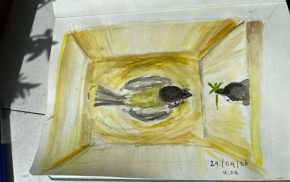 Terwijl ik via de livestream naar de koolmees in haar nestkast kijk, valt het mij op dat V best veel bezig is met het poetsen en insmeren van haar verenkleed. Waarom doet ze dit zoveel? Heeft de hoeveelheid zonlicht hier misschien iets mee te maken? Is het niet gewoon fijner om in de zon te broedden?