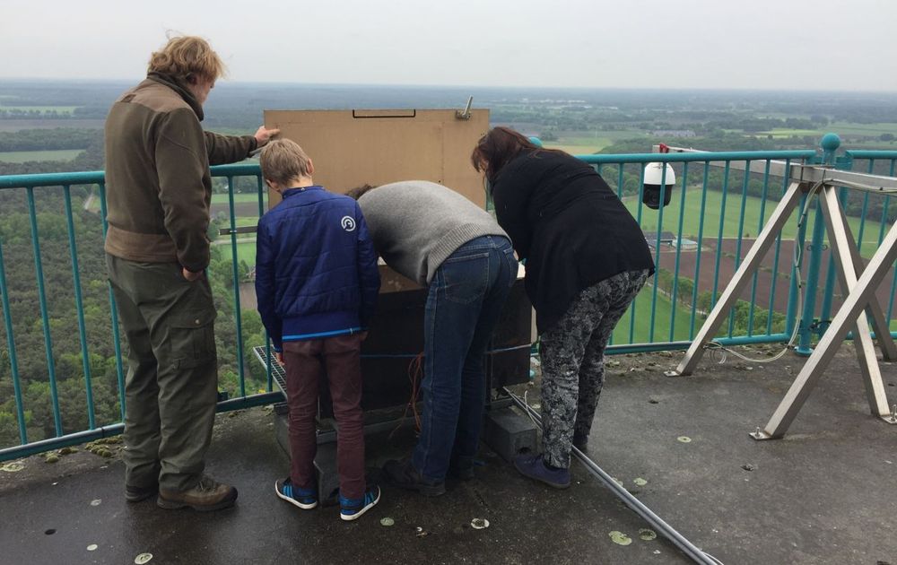 Het was een miezerige grijze dag in De Mortel maar dat weerhield ons niet om de twee slechtvalken op 121 meter hoogte te ringen. Naast Peter was ook Eleanora op de toren. Eleanora verzorgt voor BDL slechtvalk iedere dag de dagsamenvatting die zij publiceert in het clubhuis. Verder was Thomas van 10 jaar oud aanwezig, hij is zeer geintresseerd in de natuur en