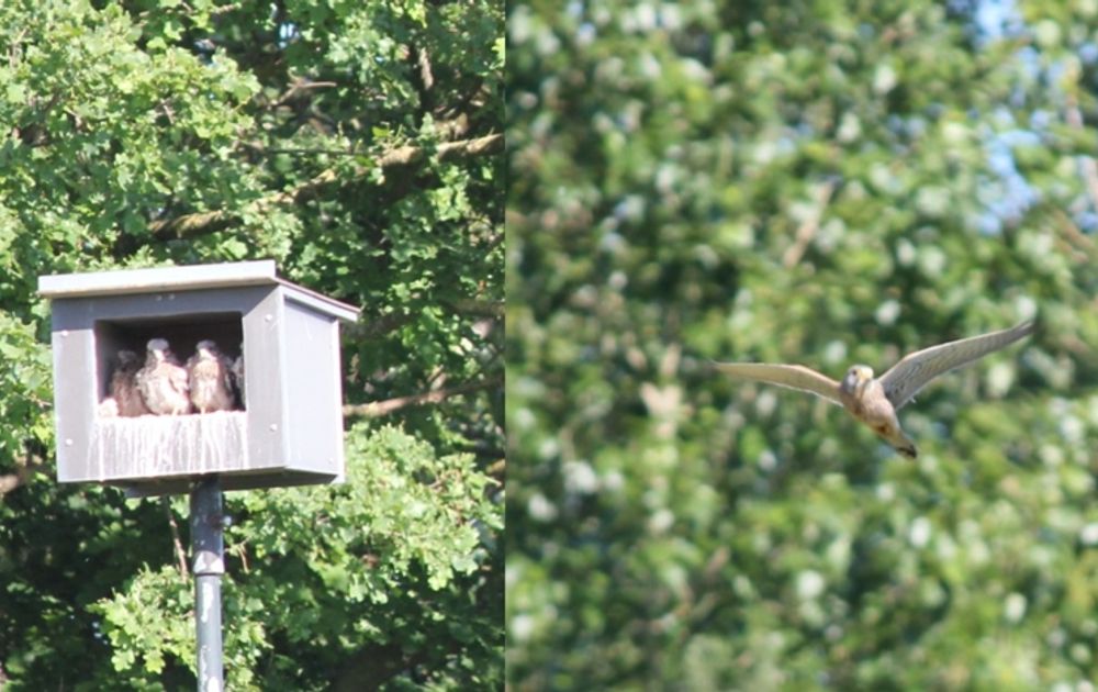 Wat moet dat een machtig oergevoel zijn, de eerste keer op de vleugels het luchtruim in. Doen waar je voor geboren bent. Eerst vliegen. Er is volop geoefend, het nest wordt te klein, ze slaan elkaar nog een kopschudding met dat gewapper. Van ‘brusjes’ worden het al een beetje concurrenten; hier met die muis, voor MIJ! En tegen ma: ZELF DOEN!
