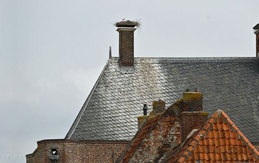 En zo spelen zich op veel nesten op dit moment dezelfde vertederende taferelen af en wordt dezelfde strijd gestreden. Daar zat ik aan te denken toen we vandaag (29 april) in het mooie vestingstadje Elburg waren. Binnen de vesting zijn twee ooievaarsnesten te vinden op historische gebouwen. De éne weet u misschien nog. Op 9 april liet ik u een stukje uit het nieuws zien van een nest dat van een dak was afgestormd en op een auto terecht was gekomen. Nu ligt er weer een klein nest op dezelfde plek en wordt er keurig gebroed.