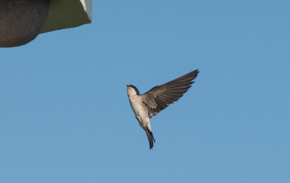 Ook de kunstnesten zijn behoorlijk natgeregend maar de regen heeft de invliegopeningen niet kunnen bereiken. Het lijkt erop dat de Zwaluwen het weer voorvoeld hebben, massaal hebben ze de openingen gebaricadeerd met een extra laag modder. Dit hebben we mooi op de camera kunnen zien. Van de 54 kunstnesten lijken er nog 6 onbezet, de dakloze Zwaluwen hebben dus nog keus.