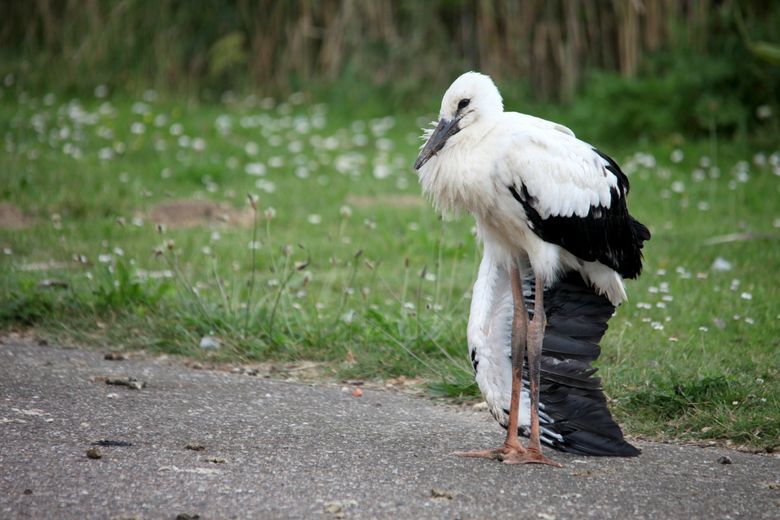 Vorig jaar kregen we een telefoontje: Leo er staat een ooievaar op de grond en die laat constant een vleugel hangen. Natuurlijk bedank ik eerst de afzender voor de snelle melding en dan als een speer ernaartoe. Eerst zus Maria en zwager Richard opgehaald en richting de locatie. De sirene ontbrak eraan, anders had ik die ook nog aangezet. Daar aangekomen, hebben we ons eerst gemeld en we zijn toen gezamenlijk het terrein op gegaan.