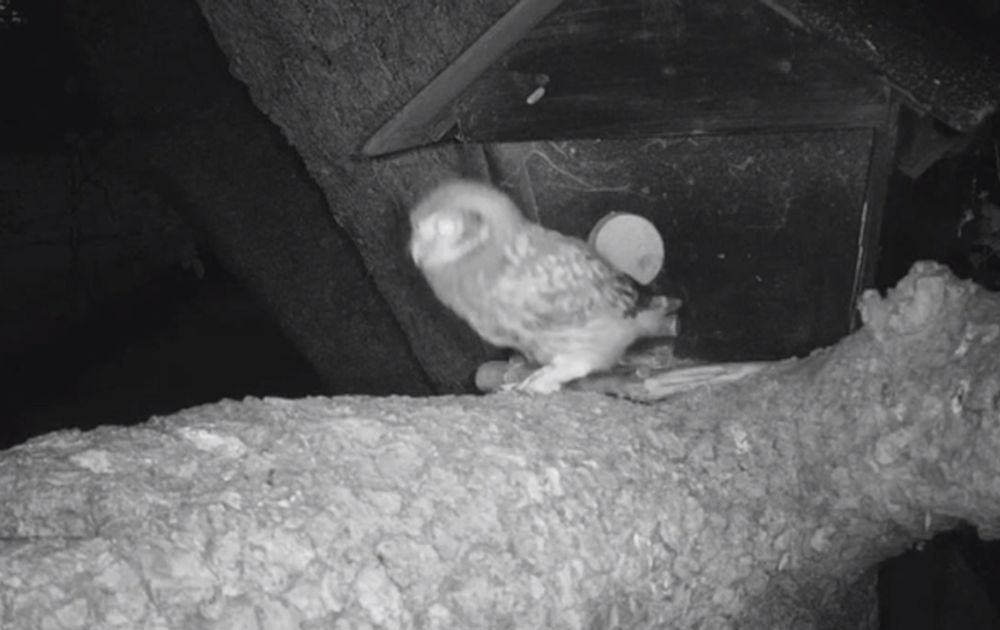 Vannacht stapte BOS (de ongeringde) het terras op. Beetje rare tijd misschien voor een terrasbezoek, maar ja, het zijn nu eenmaal steenuilen. De andere twee hebben zich nog niet buiten gewaagd, maar zullen vermoedelijk snel volgen.