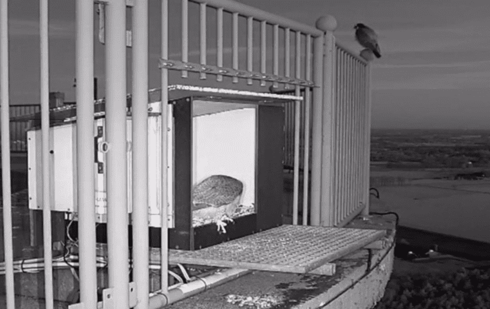 Nou, dat is nog steeds heel goed mogelijk. Vanmorgen was chatter Falco ter plekke. Hij zag 2 slechtvalken aanwezig, man en vrouw, aan de grootte te zien, en hij zag een paring in een antenne op het dak. Via de cams was ook het geluid van een paring hoorbaar.