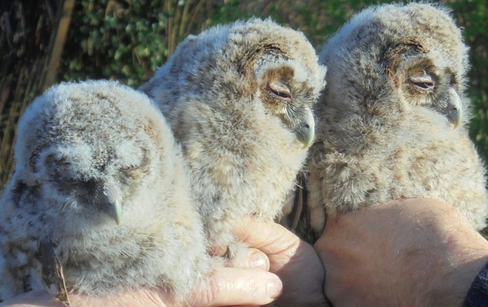 Als afsluiter van de dag vonden een kast met wel een heel mooi familietafereeltje, waarbij de aanwezigen tevens dringend om een ringetje vroegen. Ook hier zagen we hetzelfde als bij deze kast, de jongen waren 23, 25 en nog eens 25 dagen (zoals u weet wordt dit door middel van de vleugelmaat vastgesteld) en de jongste was ook hier de zwaarste, respectievelijk 305, 310 en 358 gram.