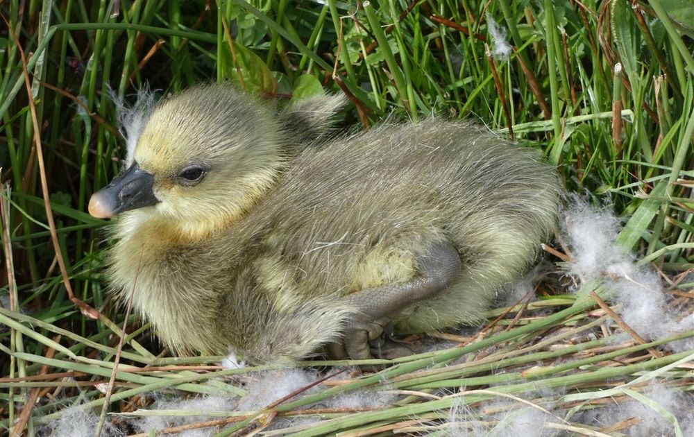 De pullen van de eerste ganzenfamilies zijn al aardig groot en oefenen vast met hun vleugels. De laatste familie grauwe gans heeft kleine gele pulletjes van slechts enkele dagen oud, duidelijk afkomstig van een laat broedsel. Mogelijk gaat het hier om een koppel ganzen die de eieren verloor aan een roofdier of aan menselijke verstoring. In veel gebieden in Nederland worden ganzennesten legaal verstoord om de populatie niet al te zeer te laten groeien. Dat leidt tot vervolglegsels. Zo stuitte ik afgelopen maandag in een natuurgebied bij Wilnis op een ganzennest met 2 eieren en een pas uitgekomen pulletje, zie de leadfoto.