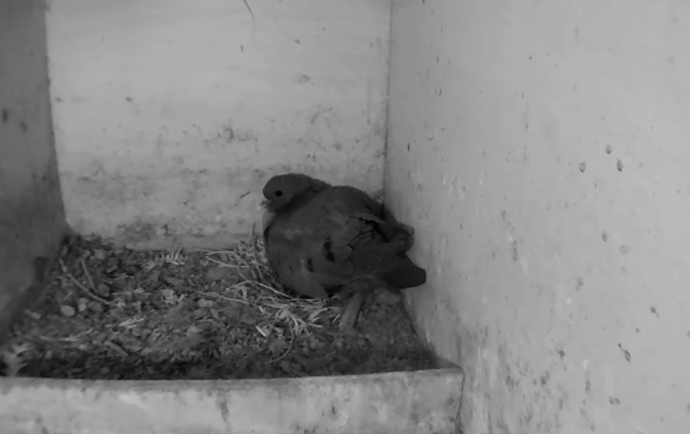 De nestkast was ontdaan van alle takken, pluizen en haren die de kauwen meegesleept hadden. Na deze schoonmaak hoopten we op de terugkeer van onze welbekende Kerkuil. Maar er lag nog een kaper op de loer, de holenduif! De holenduif is snel ingetrokken na de schoonmaak, hij zit momenteel al op twee eieren te broeden. Dit fantastische tafereel willen we jullie niet ontnemen en we hebben daarom besloten de camera’s weer aan te zetten. Geniet dus van de nieuwe bewoner van Beleef de Lente!