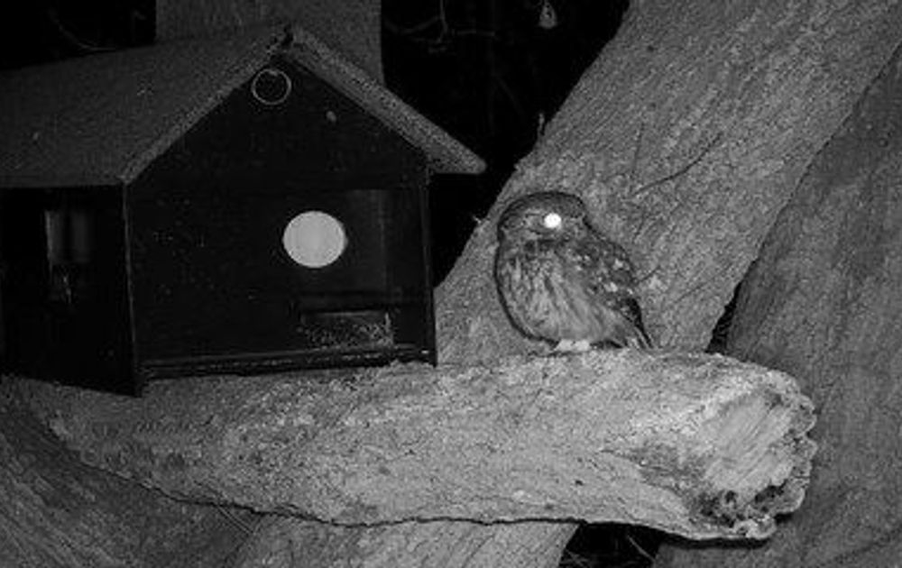 Soms zachtjes snurkend. En zowaar kwam man met een prooitje op de tak.