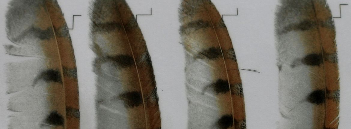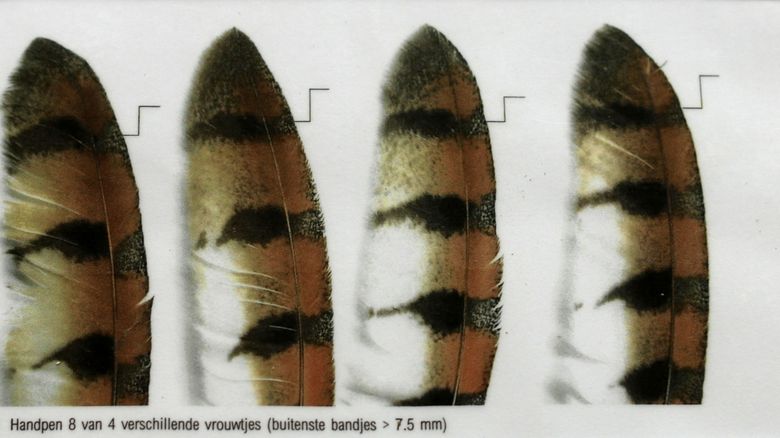 Vanaf zeven weken is het mogelijk om het geslacht van het jong vast te stellen. Ringers kijken daarvoor naar de buitenste bandjes van handpen 8, 9 of 10. Zijn de aaneen gesloten bandjes smaller dan 7,5 mm dan is het een man, zijn ze breder dan 7,7 mm, dan is het een vrouw.
