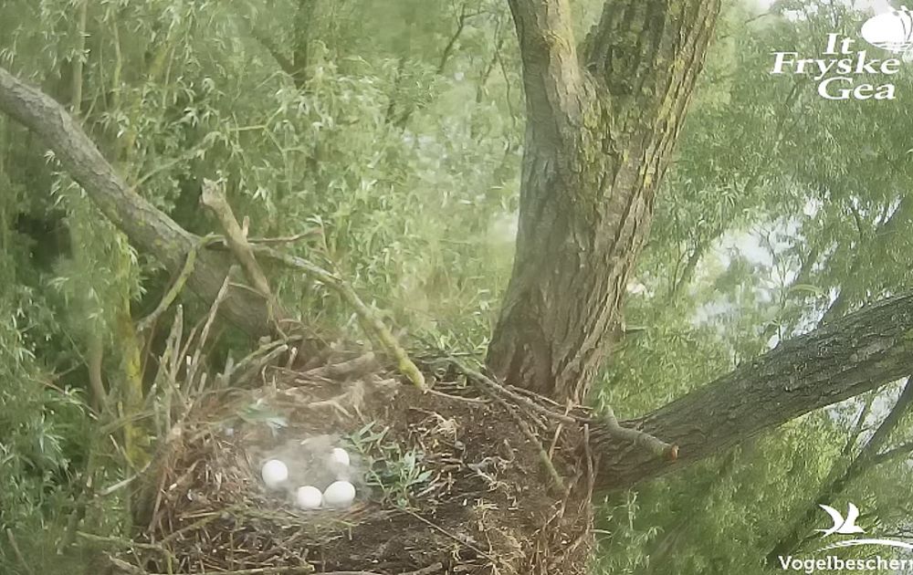 Als we de beelden bekijken – en wat hierover online wordt gezegd – dan valt mij op dat men, in deze rustige broedtijd, vooral bezig is met hoe de gans zit en draait. Of er een patroon in zit? Ik vind dit prachtig, want het betekent vooral dat de gans het rustig heeft. We hebben de ‘pestkoppen’ op het nest dan ook al een tijd niet meer gezien, ze hebben blijkbaar de boel opgegeven. Dat moet ook wel, want er moet nog ongeveer een (dikke) week rustig worden gebroed.