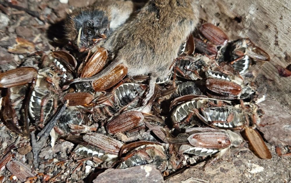 Bij de foto in de header: Maar liefst een voorraad van 30 meikevers toffen we afgelopen zaterdag in een nestkast. Meikevers zijn de enige ongewervelde prooien die op voorraad gelegd worden, bijkomend voordeel in vergelijking met weke prooien prooien als rupsen, larven en wormen die snel uitdrogen en daarom direct geconsumeerd moeten worden.