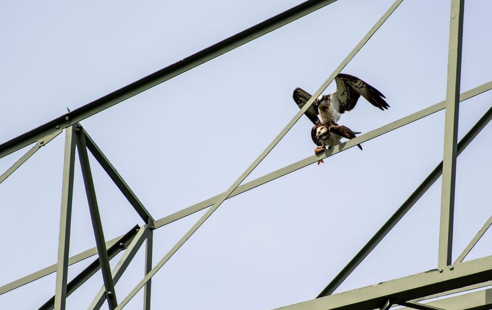 Tot onze schrik kwam in 2023 het vaste vrouwtje visarend niet terug. De man van de webcam, Duitser 7TG, kreeg het in zijn eentje aan de stok met grote Canadese ganzen. Ondanks dat hij zijn mannetje stond, legde de vrouw gans een ei en wilde daarna van geen wijken weten. Uiteindelijk moest de boommarter ingrijpen en verlieten de ganzen het nest. Maar zoals jullie weten kwamen de ganzen ook dit jaar vol zelfvertrouwen terug. Ondanks dat de visarendman al op 23 maart terugkeerde naar de Biesbosch, moest hij weer in zijn eentje de strijd aangaan. Met een gebrek van een vrouw aan zijn zijde en twee doldwaze ganzen op zijn nest, gaf hij de strijd best snel op. Vanaf begin april zagen wij meerdere keren de ganzen de visarend verjagen! De rollen waren omgedraaid!
