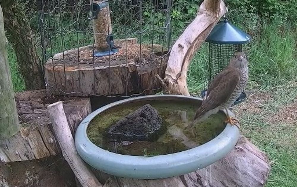 De sperwer die we bij de voedertafel zagen, zal ongetwijfeld terugkomen. Hopen dat ze zich vaker zo goed laat bekijken. Rustig op de waterbak. Of jagend achter een vogel aan. Want de sperwer eet vogels, van mezen en mussen tot duiven.