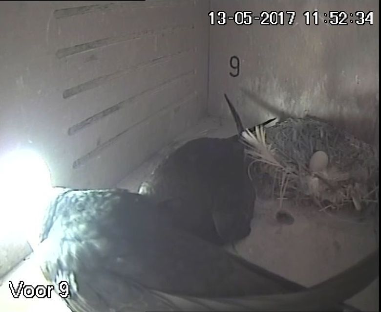 De afgelopen week zagen we al een paar keer ons paartje herenigd in de kast. De grote vraag is nu: Wanneer komen de eieren? Of nog beter: Wanneer komt dat allereerste ei? Gemiddeld leggen gierzwaluwen zo rond 20 mei hun eerste ei. Wil je raden wanneer ons paartje hun eerste ei legt? Kijk dan even op het vorige blog van Astrid en win een rondleiding bij de locatie van de gierzwaluwcamera's van Beleef de Lente! Vooralsnog wachten we nog in spanning af tot het eerste ei in beeld komt.