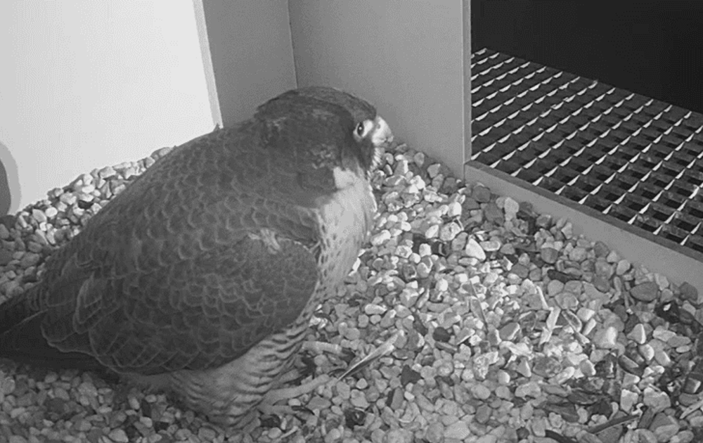Ik noemde al dat het er voor kijkers een beetje sneu uit kan zien dat onze valken zo hard hun best doen, maar dat het toch niet lukt. Vinden onze valken dat erg? We kunnen niet in die koppies kijken en zullen het dus niet zeker weten. Mijn persoonlijke interpretatie is dat onze valken vooral bezig zijn met leven in het hier en nu, en dat ze niet zo bezig zijn met of ze in de toekomst misschien wel of niet eieren hebben. Ze gaan er in elk geval niet bij de pakken neerzitten. als er geen eieren komen gaan ze gewoon door met het verdedigen van hun territorium en het vangen van prooien. Aangezien we nu al een aantal jaren in deze situatie zitten, is duidelijk dat het gebrek aan eieren niet in de weg staat voor de stevige paarband tussen deze man en vrouw. Man BUS en vrouw 4NL zijn en blijven een sterk koppel!
