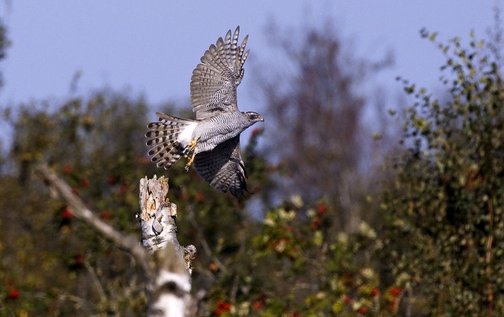 Met de zeearend is de havik toch iets voorzichtiger. Dit blijft vaak bij schijnaanvallen en niet een rechtstreeks treffen van de twee vogels. De zeearend is dan ook meer dan twee keer zo groot als de havik, dus ik kan me voorstellen dat hij hiermee iets voorzichtiger omgaat.