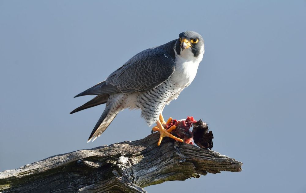 En een slechtvalk die op het wad vertoeft heeft dan weer een heel ander dieet. Die eet bijvoorbeeld veel steltlopers (o.a. grutto’s, tureluurs, en kanoeten), meeuwen, en eenden (o.a. wintertalingen) maar ook grote sterns, aalscholvers, en blijkbaar ook regelmatig een verdwaalde merel.