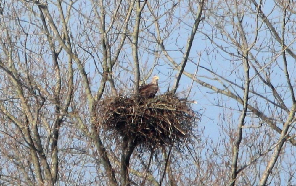 Daar lijkt het immens grote nest van het zeearend paar nu helemaal (ei)klaar te zijn. Met name vrouwlief laat steeds meer “binding” zien met dit nest. Maar wat heet klaar, een zeearend man kan ook tijdens de broedperiode van 35 à 38 dagen, nog met regelmaat takken aanslepen.