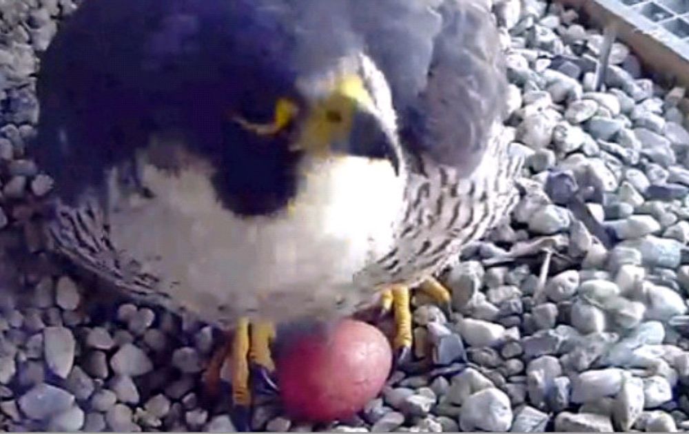 Het ei hoeft nog niet meteen bebroed te worden. Slechtvalken beginnen pas echt met broeden na het één na laatste ei. Wanneer dat is weten zij zelf heel goed, wij kijkers mogen gissen. Drie of vier eieren komt het vaakst voor. De eitjes worden om de 48-72 uur gelegd.