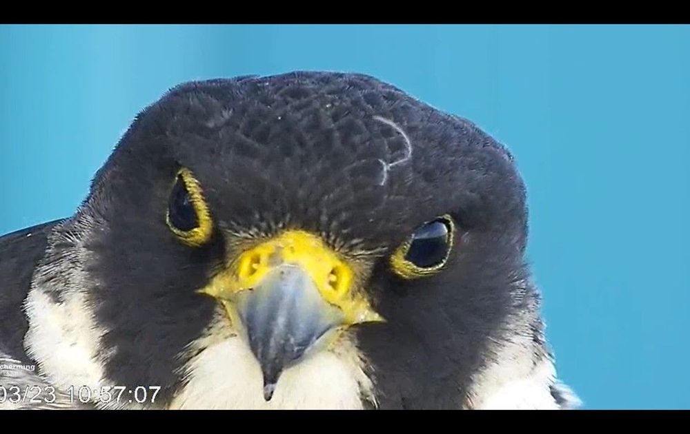 Eeuwige roem is er voor Vogelvolger. Hij/zij heeft de eipoll op het Rijksmuseum gewonnen. Op woensdag 14 maart 2023 om 19:04 was daar dan het 1e spierwitte ei. Tijdens zonsopkomst zien wij de kleur veranderen van spierwit naar scharlakenrood en een nieuwe fase is begonnen. Maar het feitelijke broeden is nog niet gestart want pas na het een na laatste ei gaat V echt broeden en mag BTR af en toe de honneurs waarnemen. Ruim twee dagen later, als de avond zich al in de afrondingsfase bevindt, is daar plots ei nummer 2. Wat een weelde. Dat er minimaal nog één zal volgen blijkt alras duidelijk, want het ovale Rijksduo is regelmatig alleen. Dit kan geen kwaad hoor! Slechtvalken weten feilloos wanneer het duo de bibbers krijgt. Dan is het zondagmorgen iets voor 02:00 uur en daar is ei nummer 3 met weer een interval(k) van rond de 50 uur.
