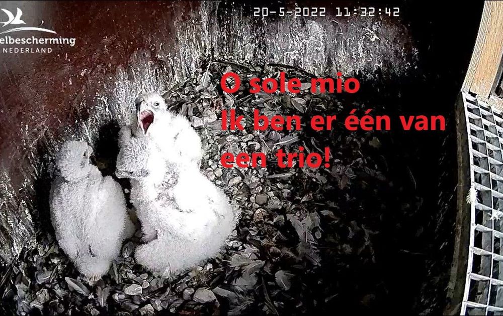 Geniet nog maar even van de naamloze kuuks want vanaf morgen is het allemaal anders, want dan krijgen ze hun uniek geletterde ring en gaan we ze vanaf dan proberen bij de ringnaam te noemen. In de chat weten we het geslacht van ze al. Er zijn namelijk 2 vrouwen en 1 man. Hoe weten ze dat eigenlijk? Dat komt doordat mannelijke slechtvalken altijd beduidend kleiner zijn dan de vrouwelijke en de chat is ervan overtuigd dat die kleinere frummel een mannetje is. We gaan het morgenochtend zien.