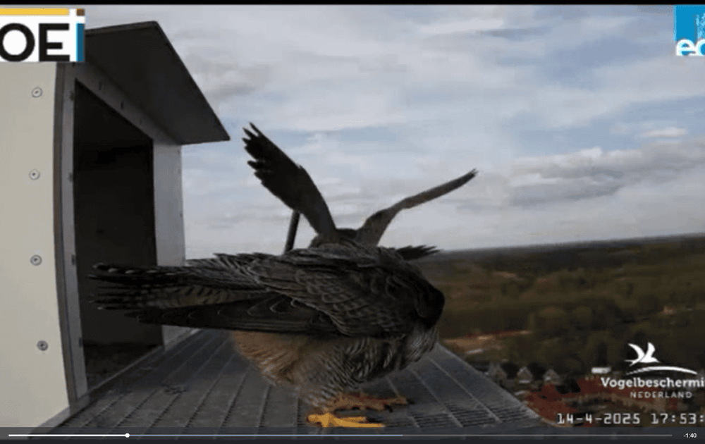 Alles gaat in sneltreinvaart, en ik hoop volgende week uitgebreid te kunnen vertellen over kuikens, prooien, M die wil voeren maar niet mag van JOS, en nog veel meer kolderieke taferelen. Maar eerst: afwachten. Want zoals ze zeggen: het vervullen van de wens betekent het einde van het verlangen — en dat verlangen is bij de Slechtvalkliefhebbers van BDL de afgelopen jaren behoorlijk op de proef gesteld.