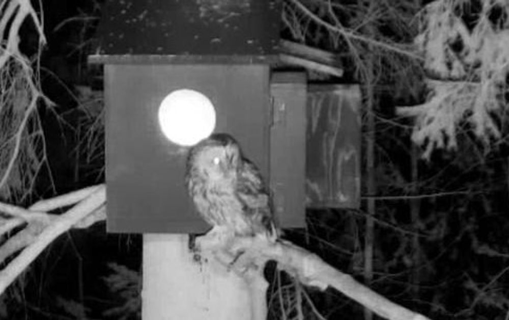 Drie stormen later maakten wij de balans op. Op een enkele gesneuvelde boom in het bos van Jan na, was er aan het bos en aan de kast niet veel schade. Tot wij 17 februari het verdrietige bericht kregen dat Jan een dode bosuil had gevonden op enkele honderden meters van de kast. Hoewel het lastig te zeggen blijft bij de bosuilen, deed het ons vermoeden dat het de M (man) betrof die wij tot dusver bij de kast hadden gezien. Een behoorlijke schok, want dat zou kunnen betekenen dat er dit jaar geen bosuilkuikens zouden komen. De natuur kan hard zijn. Fingers Crossed. En wat bleek? 18 februari waren in de verte geluiden van een M en een V (vrouw) te horen! Zou het dan een andere uil zijn geweest?