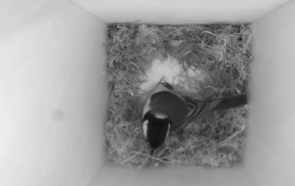 En wat zijn wij blij mee met de tweede nestkast. De vooruitzichten voor de ‘originele’ nestkast (Cam) zijn erg goed, maar je weet natuurlijk nooit zeker of hier ook daadwerkelijk kuikens op gaan groeien. Door twee nestkasten te volgen, spreiden we onze kansen. Met een beetje geluk gaat alles in beide nestkasten volgens plan en kunnen we twee koolmeesgezinnen gaan volgen. Dubbel plezier dus: twee keer nestbouw, twee keer eitjes, twee keer kuikens...